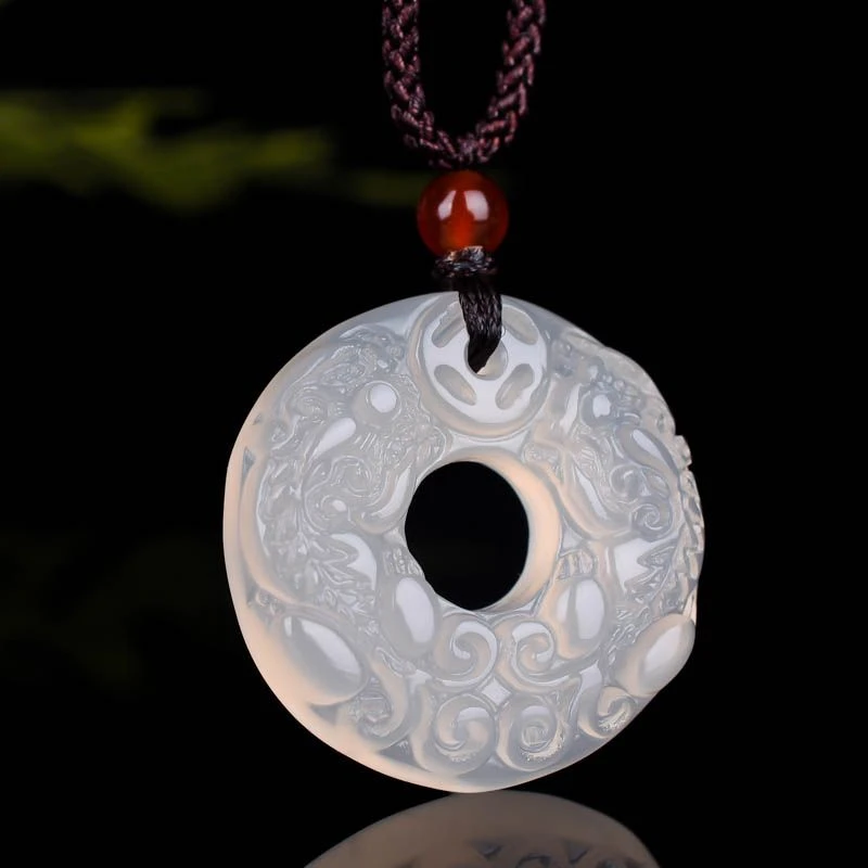 天然白玛瑙貔貅平安扣吊坠男女款冰透招财