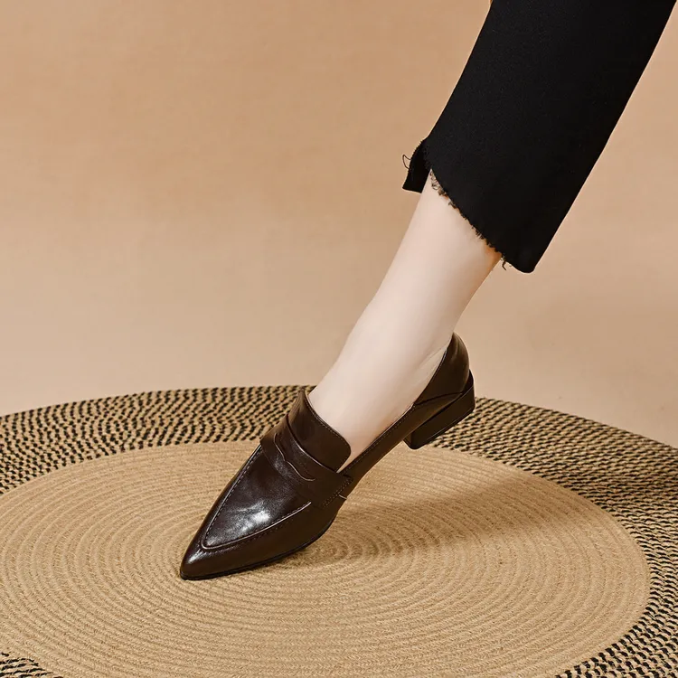 羊皮一脚蹬鞋气质小高跟粗跟尖头国潮乐福鞋百搭低跟单鞋女鞋